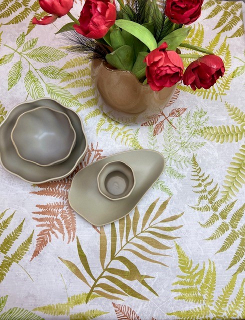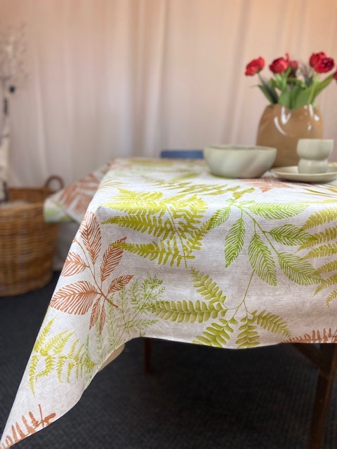 Härlig vaxduk med växter i olka färger. Vaxduken passar fint såväl inomhus som utomhus. Vaxduken är gjord av PVC enligt Öko-tex standard tillverkad i Europa.