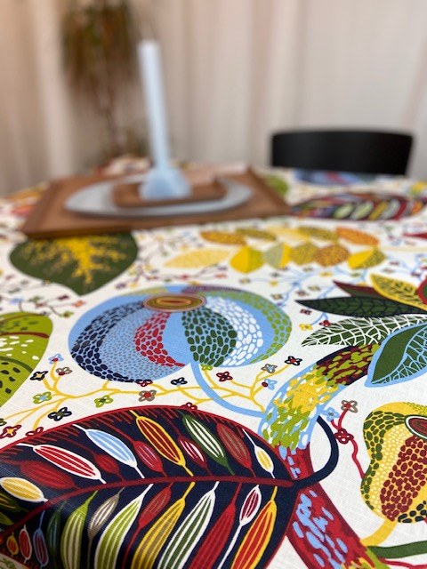 En härlig textilduk som gör en fin grund för en vacker dukning!