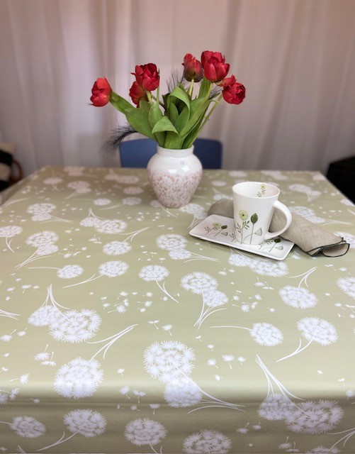 Härlig Rund vaxduk med maskrosor som får dig påmind om sommaren. Vaxduken passar fint såväl inomhus som utomhus. Vaxduken är gjord av PVC enligt Öko-tex standard tillverkad i EU