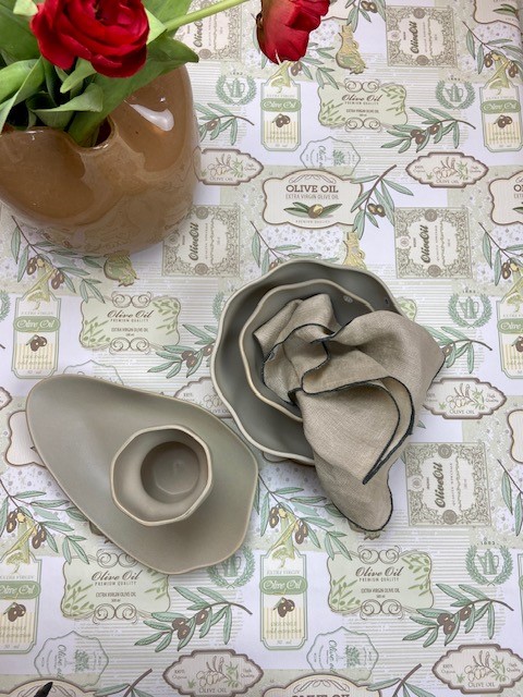 Vacker rund vaxduk med oliver.. Vaxduken passar fint såväl inomhus som utomhus. Vaxduken är gjord av PVC enligt Öko-tex standard. Vaxduken är lätt och hålla ren och torkas av med en fuktig trasa.