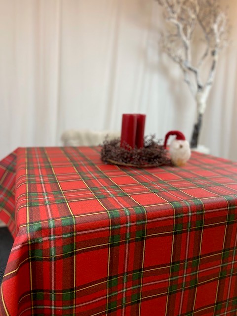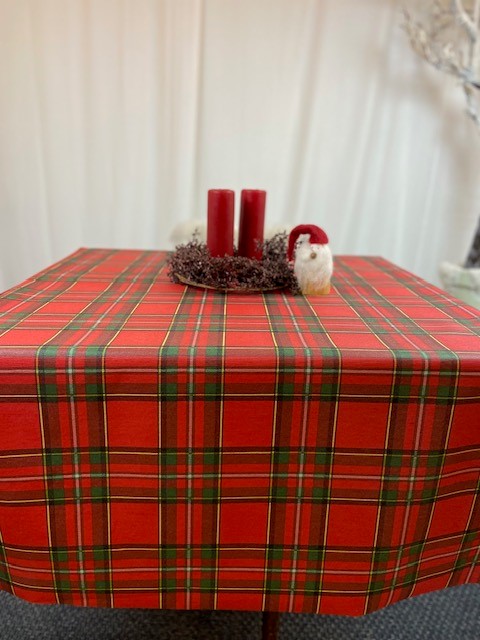 En härlig rund skotsk julduk i textil som gör en fin grund för en vacker juldukning!