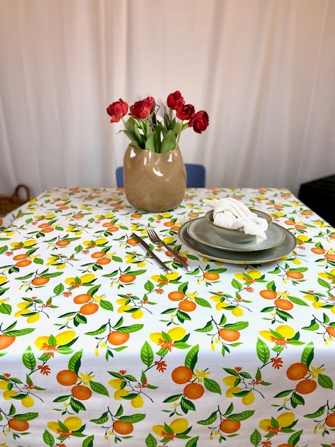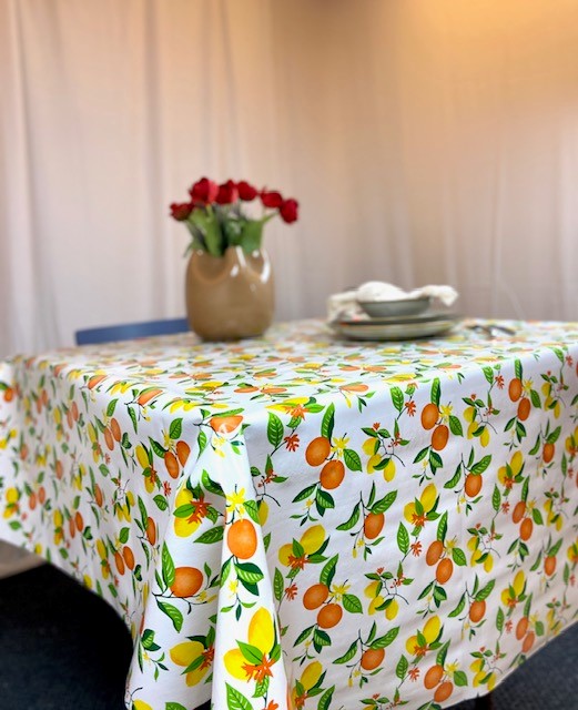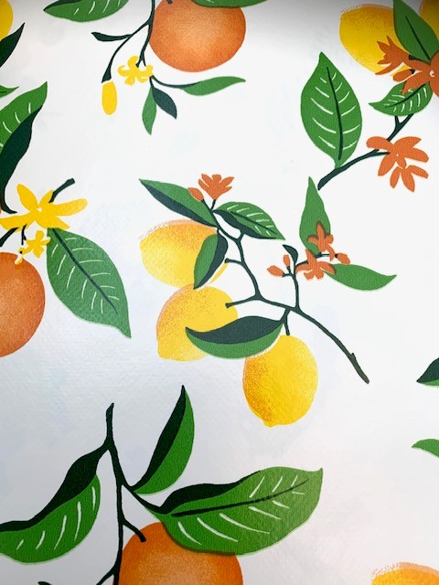 Snygg rund vaxduk med lite flossad baksida så den ligger perfekt på bordet. Väldigt lätthanterlig och enkelt att hålla ren. Går att beställa i vilket mått du vill. 140 cm är bredden.