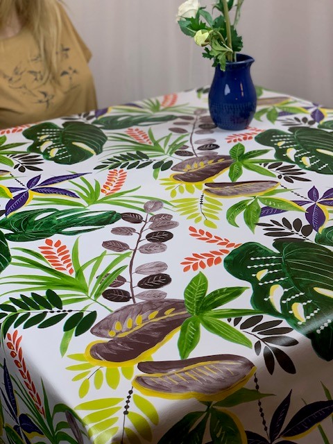 Mysig rund djungelvaxduk!. Vaxduken passar fint såväl inomhus som utomhus. Vaxduken är gjord av PVC enligt Öko-tex standard. Vaxduken är lätt och hålla ren och torkas av med en fuktig trasa.