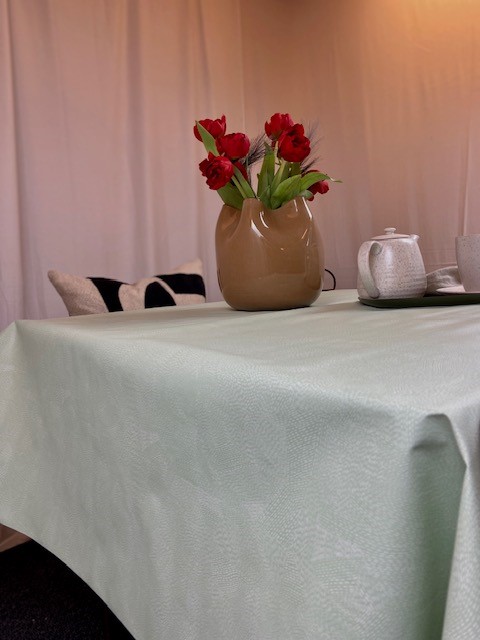 Rund härligt diskret mönstrad vaxduk i grönt mönster.