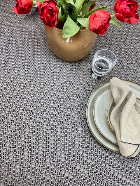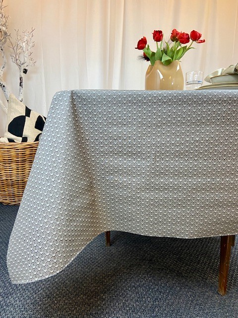 Gammaldags vaxduk med lite flossad baksida, halvblank yta och smidig att torka av.