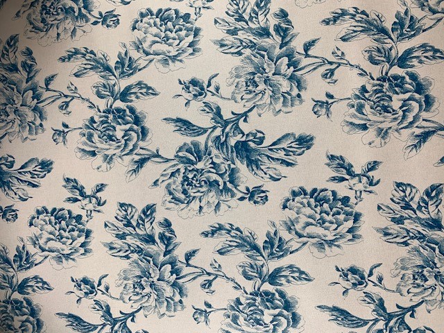 Vacker rund vaxduk med blå pioner på vit botten. Vaxduken passar fint såväl inomhus som utomhus. Vaxduken är gjord av PVC enligt Öko-tex standard. Vaxduken är lätt och hålla ren och torkas av med en fuktig trasa.