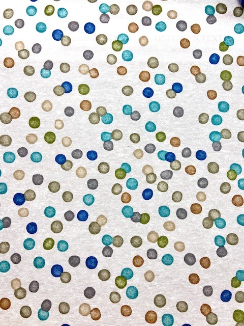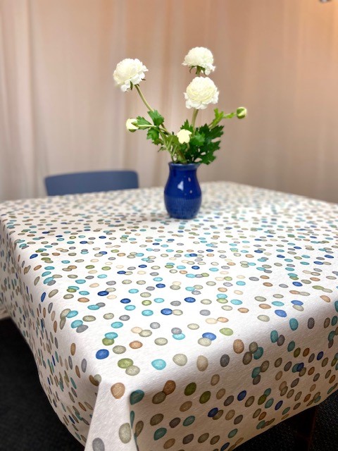 Underbar rund avtorkningsbar vaxduk med prickar på beige botten.