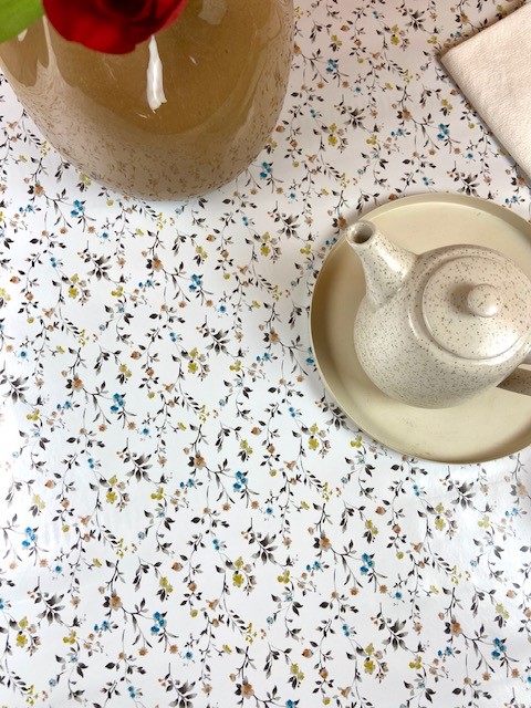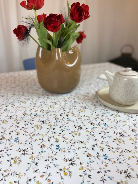 Underbar rund vaxduk med sommarblommor. Vaxduken passar fint såväl inomhus som utomhus. Vaxduken är gjord av PVC enligt Öko-tex standard. Vaxduken är lätt och hålla ren och torkas av med en fuktig trasa.