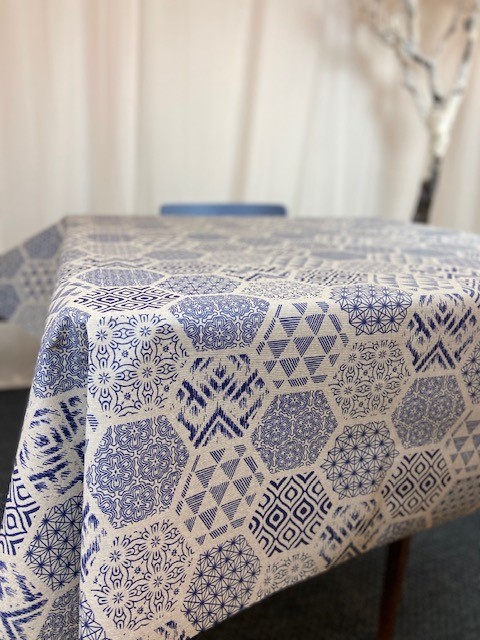 Snygg rund hexagon avtorkningsbar vaxduk av bästa kvalitet! Gör sig snygg både på stora eller små bord såsom runda!
