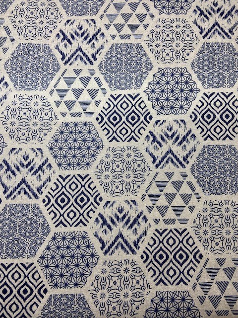 Rund textilvaxduk blå hexagon