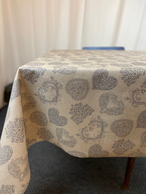 Stilren rund avtorkningsbar vaxduk med hjärtan i olika former! Gör sig snygg både på stora eller små bord såsom runda!