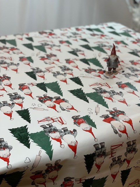 Julduk med tomtar och renar i vintrig jullandskap! Går att få som rund i diameter 138cm