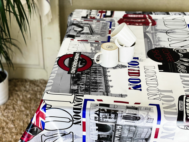 Vacker vaxduk som metervara med london motiv