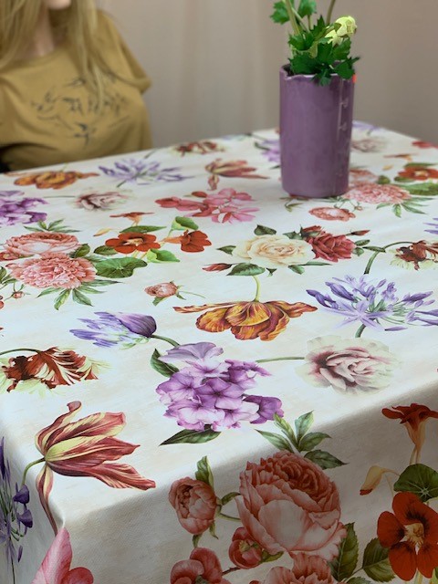 Underbar vaxduk med härliga blommor. Vaxduken passar fint såväl inomhus som utomhus. Vaxduken är gjord av PVC enligt Öko-tex standard. Vaxduken är lätt och hålla ren och torkas av med en fuktig trasa.